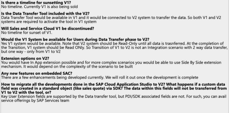 Bei einem Blick in die Q&A wird dann aber auch deutlich, dass sich nicht nur der Fokus der SAP verschoben hat, sondern auch der Anwenderunternehmen im Allgemeinen. Fast nur Fragen zu v2 – in einem Termin zu v1 wohlgemerkt: