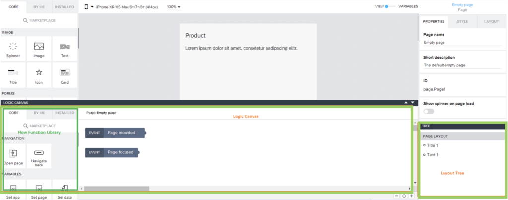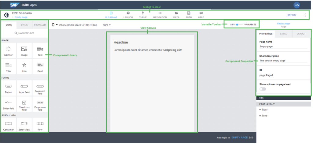 Nach erfolgreicher Erstellung der App wird der UI Canvas von Build Apps geöffnet.
