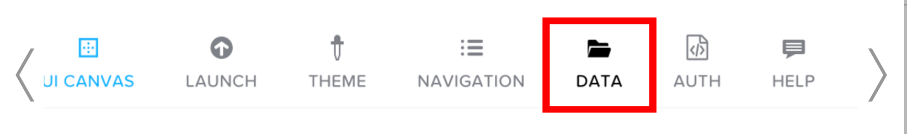 In Build Apps navigieren wir nun zum Datenbereich, der sich in den Symbolen oben auf dem Bildschirm befindet.