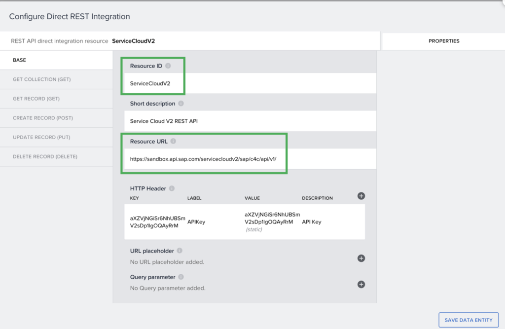 Im Abschnitt “Basis” werden wir den Ort und den Zweck der API-Verbindung angeben. Die “Ressourcen-URL” gibt den genauen Speicherort der Daten an, so dass wir auf die Endpunkt-URL unserer Datenbank einstellen sollten.