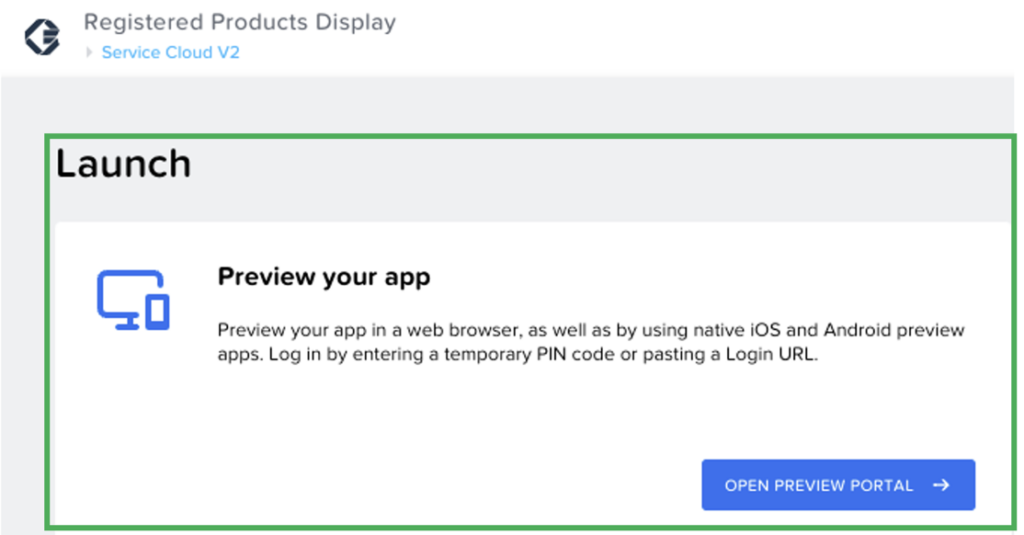 Wenn wir nun die Anwendung testen wollen, können wir einfach auf “LAUNCH” neben dem Abschnitt UI CANVAS klicken. Dadurch wird eine neue Browser-Registerkarte geöffnet, in der wir die Möglichkeit haben, unsere App im Vorschau-Portal anzusehen („Preview Portal“):