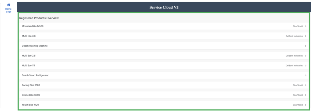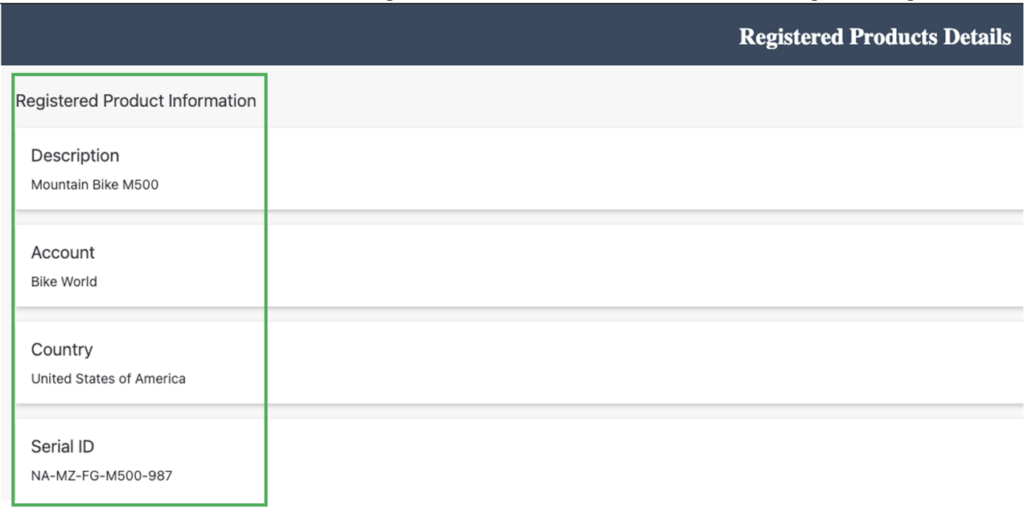 Für weitere Informationen zum registrierten Produkt wiederholen wir die beschriebene Prozedur – und zwar für die Attribute Country und Serial ID. Das Navigationselement wird die Seite öffnen, sobald ein Listenelement angeklickt wurde.