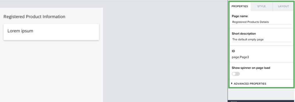 Für das Formular verwenden wir das Attribut description der Entität Registered Products als Bindungstyp – die Bindung repeated.current.description liefert den Wert für jedes Listenelement unseres UI Canvas. Auf der rechten Seite gibt es sogar eine Vorschau der abgerufenen Daten in Echtzeit.